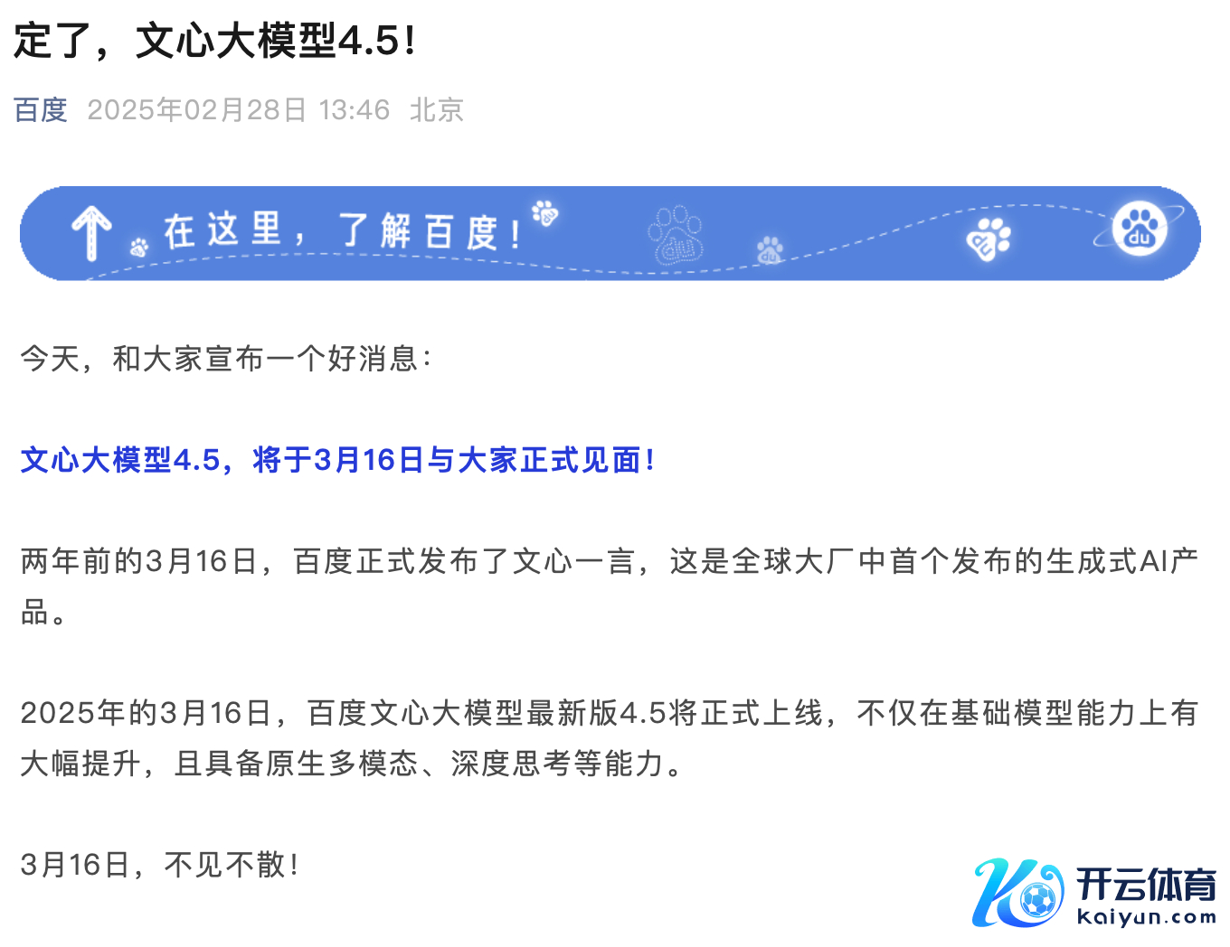 百度文心大模子最新版4.5将于3月16日郑重上线百度文心大模子最新版4.5将于3月16日郑重上线
