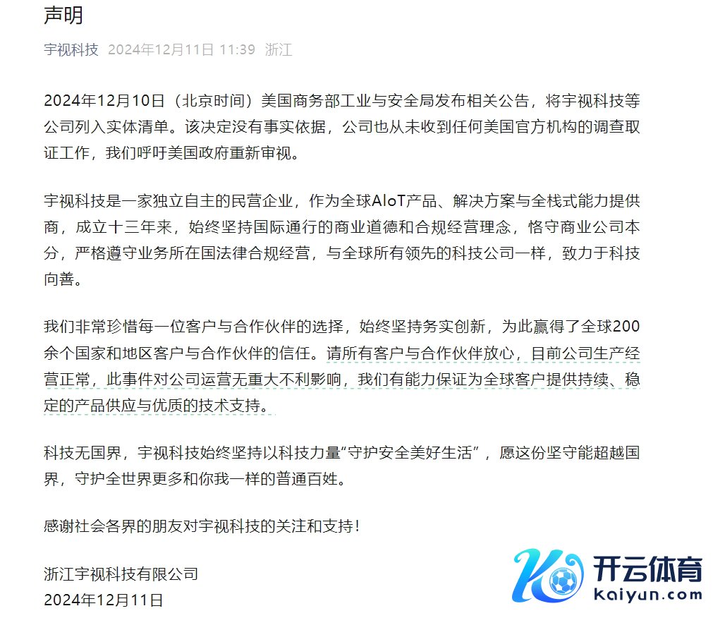 宇视科技:公司被列入“实体清单”莫得事实依据 当今出产预计日常宇视科技:公司被列入“实体清单”莫得事实依据 当今出产预计日常