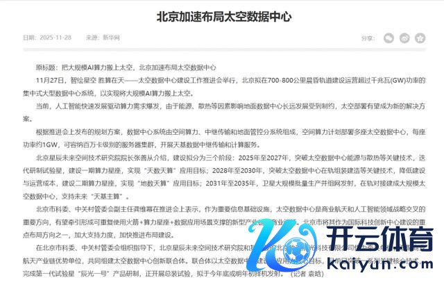 我国也莫得落下。2025年底,北京市科委、中关村管委会等部门在天外数据中心开拓责任鼓动会上漠视,我国要加速布局天外数据中心新赛谈,在距地约700—800公里的晨昏轨谈上,开拓运营突出千兆瓦功率的聚会式大型天外数据中心,把大范畴AI算力搬上天外。